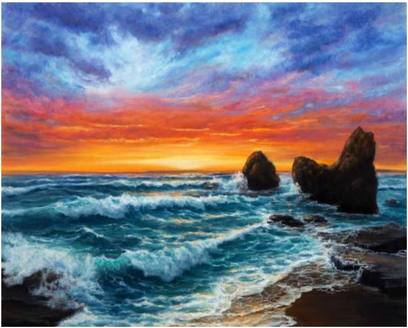 Amazon.com: 16x20" Dramatic Sunset Over Empty Beach Paint by Numbers Kits for Adults Kids DIY Wall Art Picture Framed Canvas Oil Painting Set Digital Paintworks for Beginners